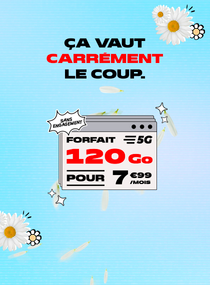 Série spéciale NRJ Mobile 120Go 5G et 29Go valables en Europe/DOM à 7,99€/mois.