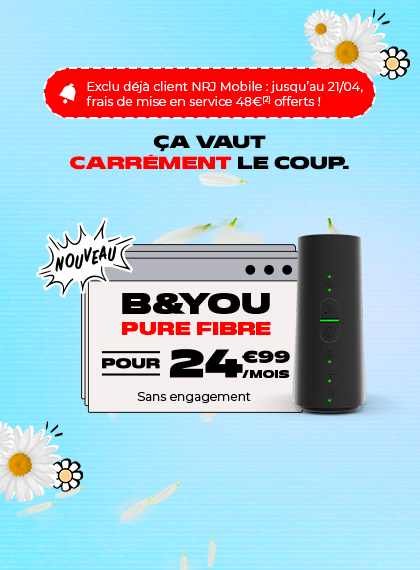 Offre valable sur nrjmobile.fr (pour l’ouverture d’une nouvelle ligne). Carte SIM 5€.