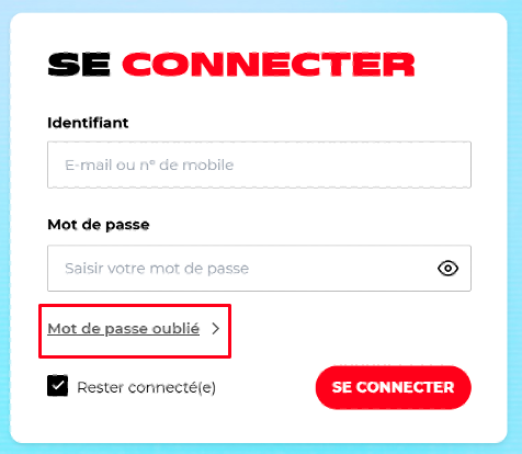 Vous avez oublié votre mot de passe ? Pas d'inquiétude, vous pouvez le réinitialiser. Pour ce faire vous devez disposer d'un accès à internet et vous souvenir de votre identifiant. Aucun frais ne vous sera facturé.