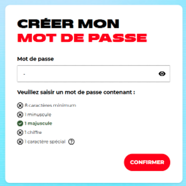 - Le système vérifie en temps réel votre saisie pour s'assurer du respect de ces critères, tels que le nombre et la diversité des types de caractères.
